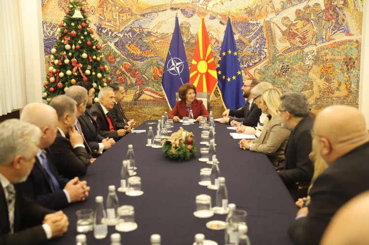 ÜSKÜP (İGFA) – Kuzey Makedonya Cumhurbaşkanı Gordana Silyanovska-Davkova, Küresel Gazeteciler Konseyi heyetini kabul etti.