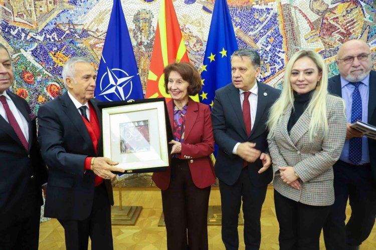 Kuzey Makedonya Cumhurbaşkanı Gordana Silyanovska-Davkova ziyaretinde; KGK Genel Başkanı Mehmet Ali Dim başkanlığındaki heyette; Sabah Gazetesi yazarı Yavuz Donat,