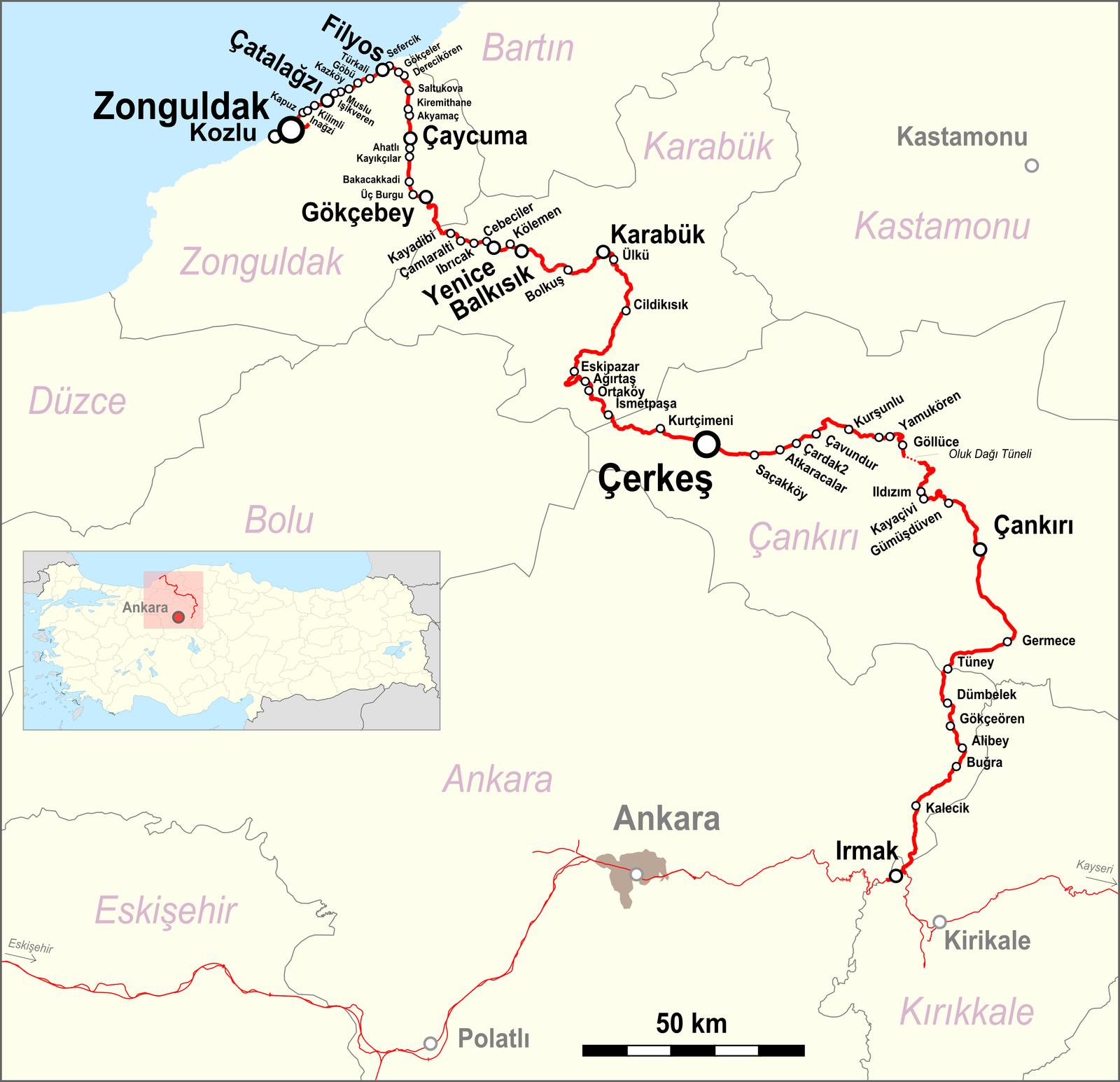 Irmak–Karabük–Zonguldak-demiryolu-haritasi