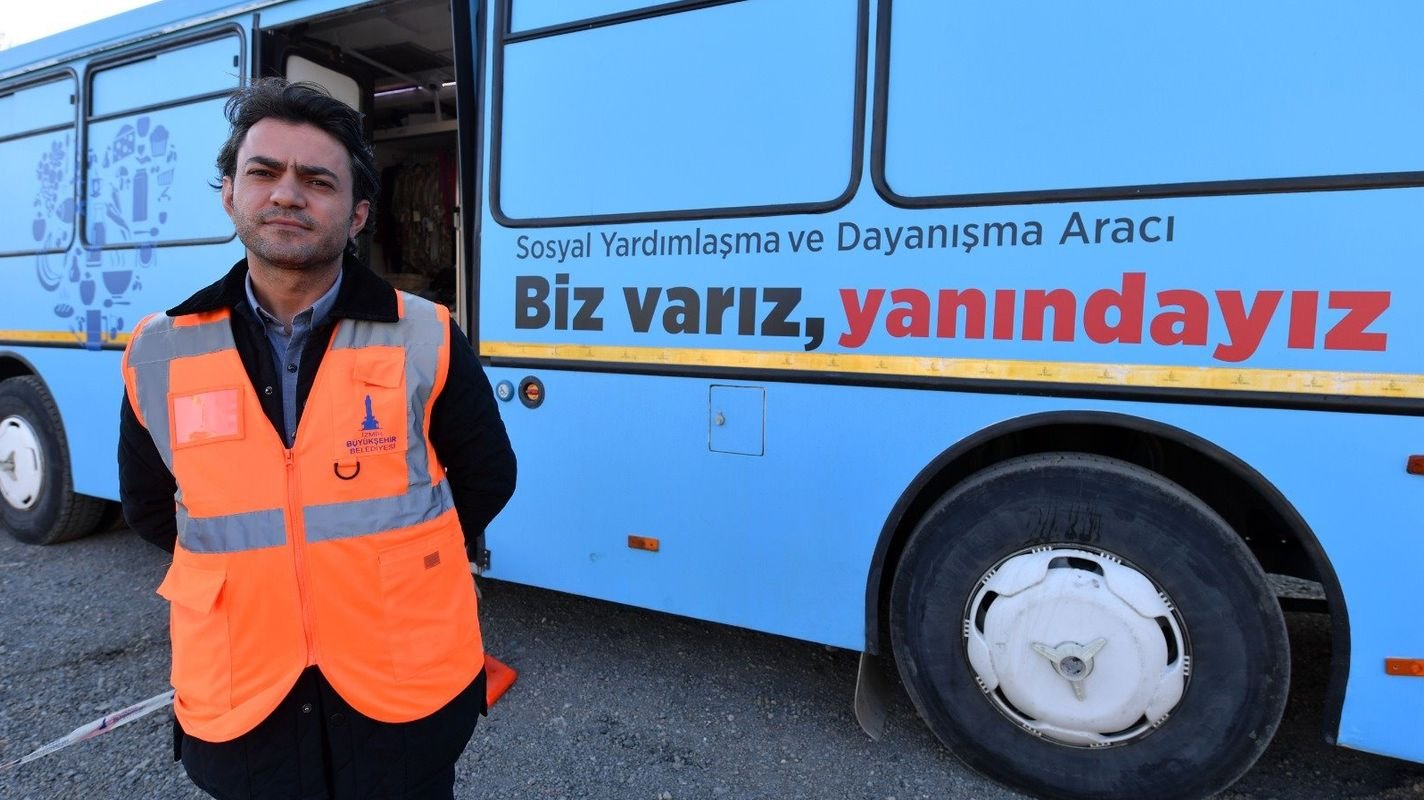 izmir buyuksehirin giyim otobusu depremzedelerin hizmetinde