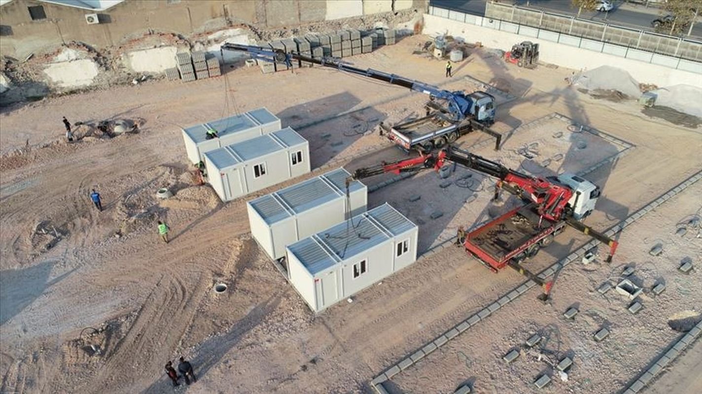 izmirde gecici barinma merkezine ilk konteynerler geldi